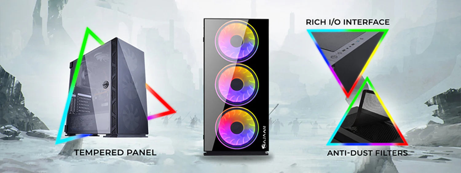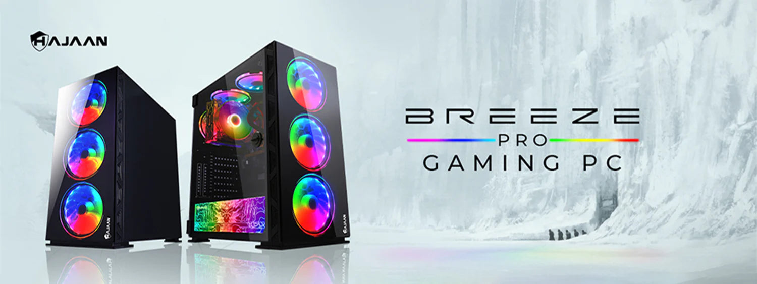 Unleash next-level gaming with the Hajaan Breeze Pro Series, featuring powerful Intel and AMD processors, high-speed memory, and advanced graphics options for smooth gameplay. Housed in a sleek, ventilated case with RGB lighting and efficient airflow design, it offers both performance and style. Perfect for gamers seeking power, speed, and visual appeal.