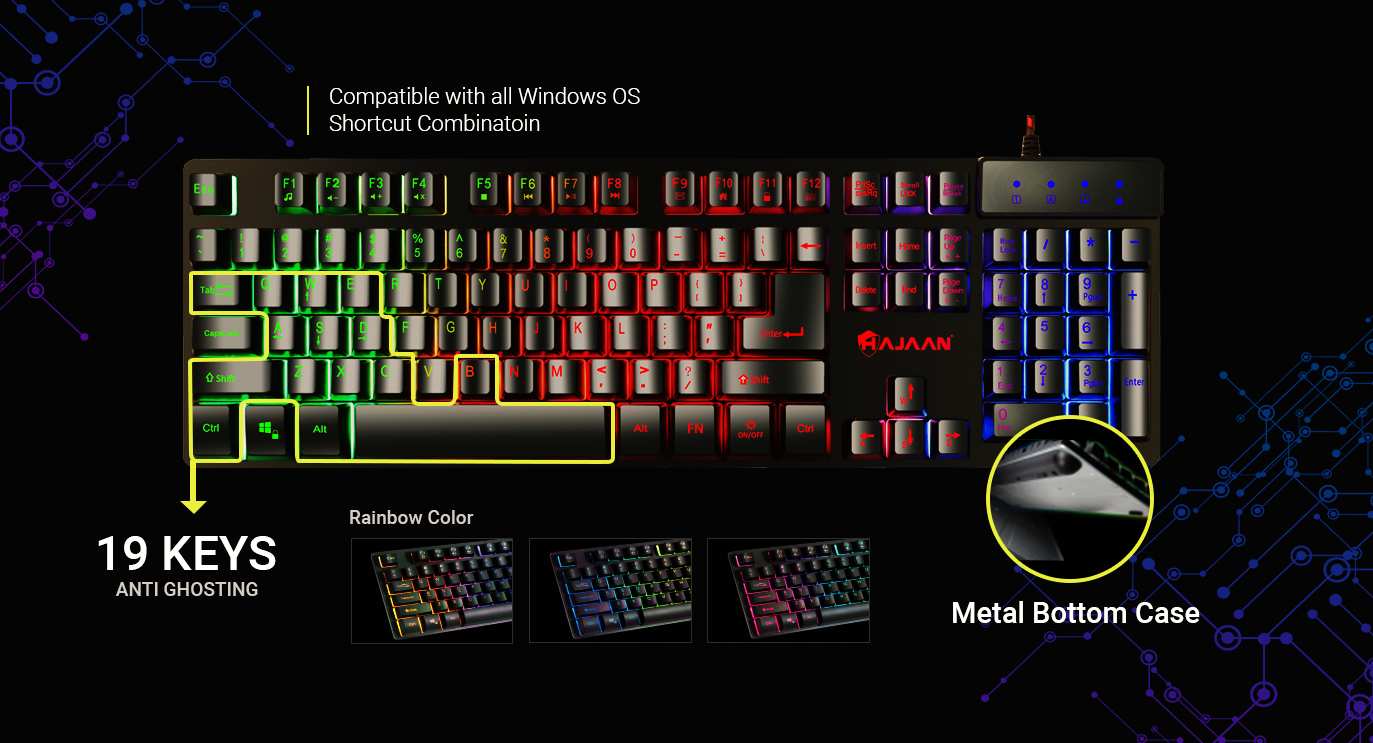 - Experience maximum control over your game with the HAJAAN HC-510 gaming bundle. It comes with a multifunctional RGB gaming keyboard, RGB backlit gaming mouse, and RGB gaming mouse pad so you have everything you need to ensure precision shots, stealth moves, and rapid combos to take down your opponent.