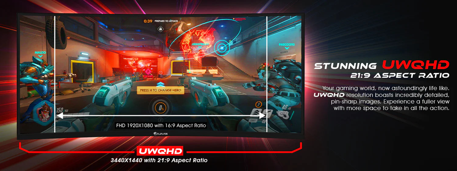 - UltraWide QHD Resolution: Immerse yourself in the world of gaming with a cinematic 3440x1440p Ultrawide Quad HD resolution. Witness your games in stunning detail, vibrant colors, and a wide field of view that brings every scene to life.