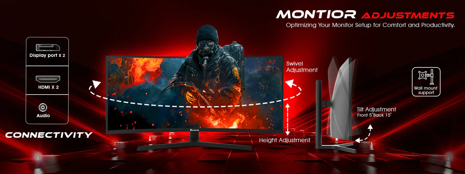 - Immersive 1500R Curved Display: The 1500R curvature envelops your field of vision, providing an immersive gaming experience that draws you into the action. Every corner of the screen feels within reach, enhancing your gaming adventures like never before.